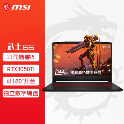 微星(msi)武士66 15.6英寸游戏本笔记本电脑(英特尔酷睿i5 16G 512GB RTX3050Ti 144Hz )高刷高色域电竞屏