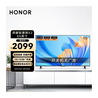 荣耀智慧屏X2 65英寸2G+16G 4K超清多屏协同10.7亿色广色域远场语音全面屏教育游戏电视开关机无广告HN65DNTA