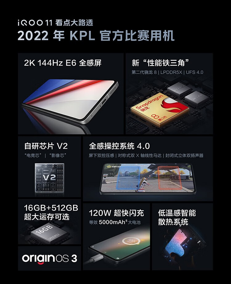 商品名称:vivo iQOO 11新品 2KE6全感屏 第二代骁龙8 自研芯片V2 120W闪充游戏电竞手机 16GB+256GB 传奇版 官方标配