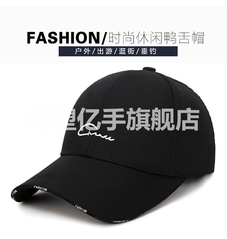 商品名称:魔塑亿手 帽子男帽子女鸭舌帽潮流百搭户外棒球帽四季运动钓鱼遮阳帽时尚简约太阳帽长檐 黑色 可调节