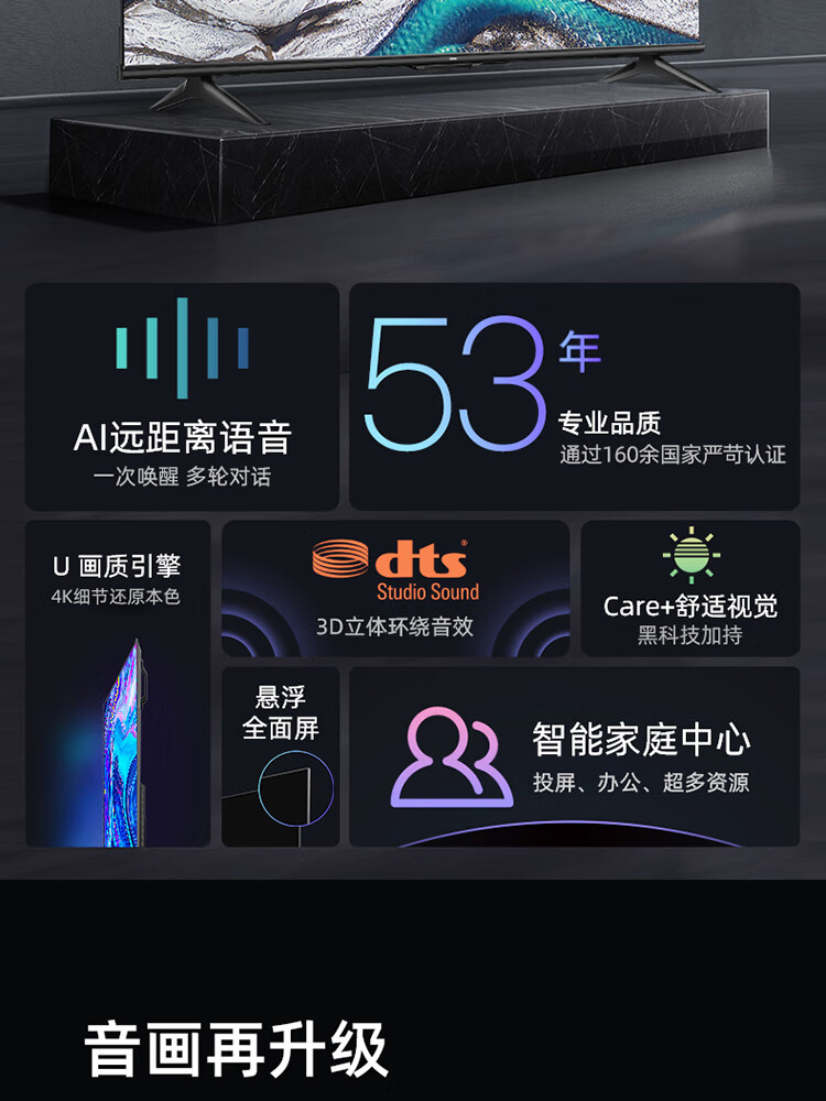 商品名称:海信电视 43E3G 43英寸 4K超高清护眼智慧屏 超薄悬浮全面屏 远场语音智能液晶平板电视机