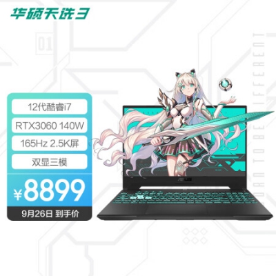 华硕天选3 12代酷睿i7 15.6英寸游戏笔记本电脑(i7-12700H 16G 512G RTX3060 2.5K 165Hz 100%P3)灰