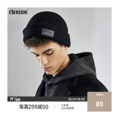 CHINISM 皮牌logo针织帽男嘻哈潮牌百搭时尚简约潮流休闲毛线帽SC21030275 黑色 可调节