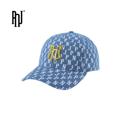 PNJ潮牌牛仔蓝棒球帽2022春季新款四季遮阳复古运动情侣鸭舌帽 牛仔蓝/金