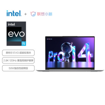 联想笔记本电脑小新Pro14 2022 英特尔酷睿i5 高性能游戏轻薄本(12代i5-12500H 16G 512G 2.8K 120Hz)银办公