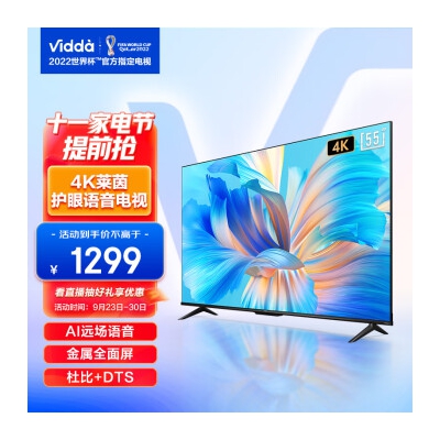 海信 Vidda 55V1F-R 55英寸 4K超高清 超薄电视 全面屏电视 智慧屏 1.5G+8G 游戏巨幕智能液晶电视以旧换新