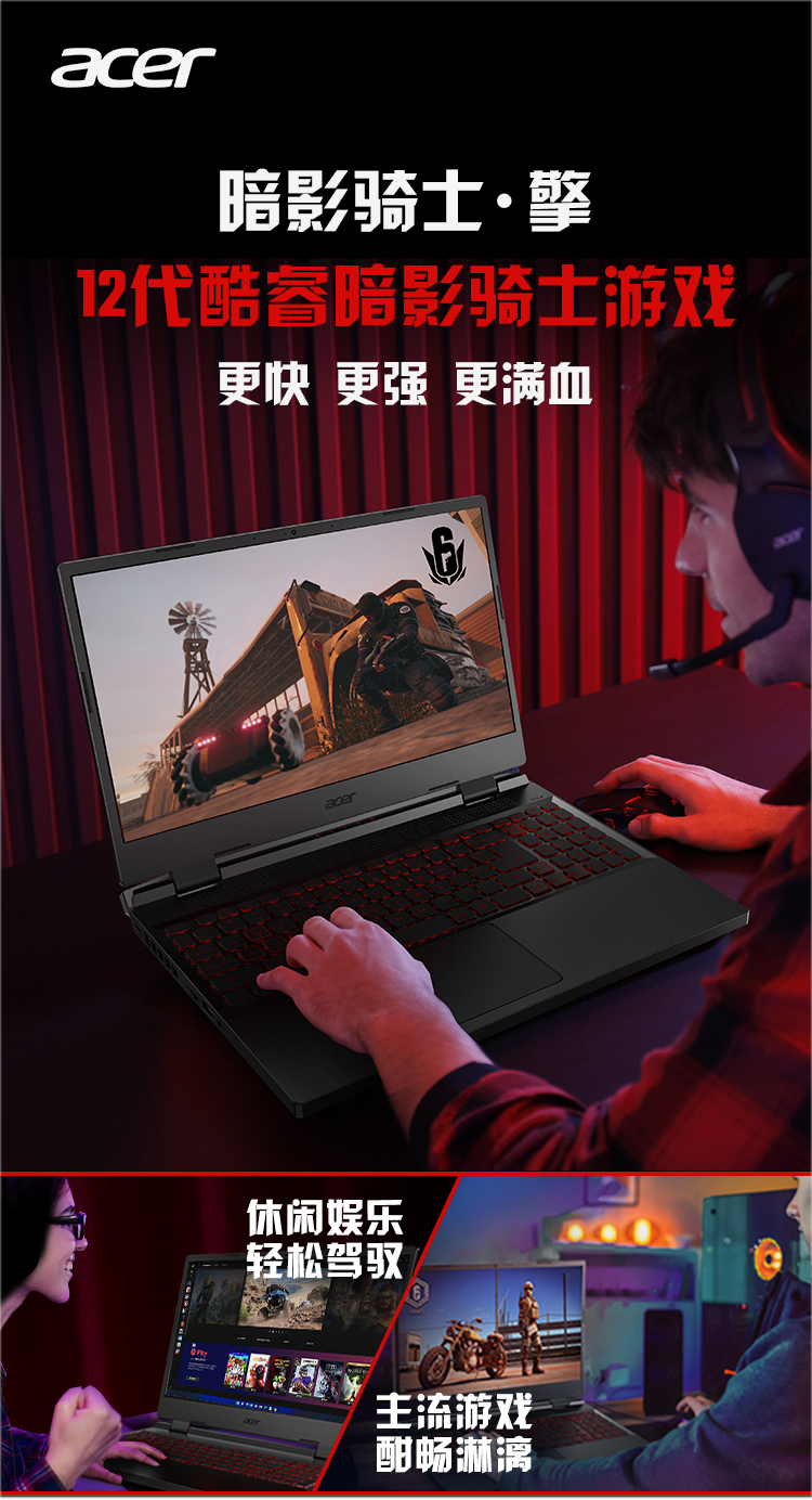 商品名称:宏碁 新暗影骑士·擎 15.6英寸游戏笔记本电脑(12代酷睿i5-12500H 16G 512G RTX3050满血95W 165Hz高刷高色域)