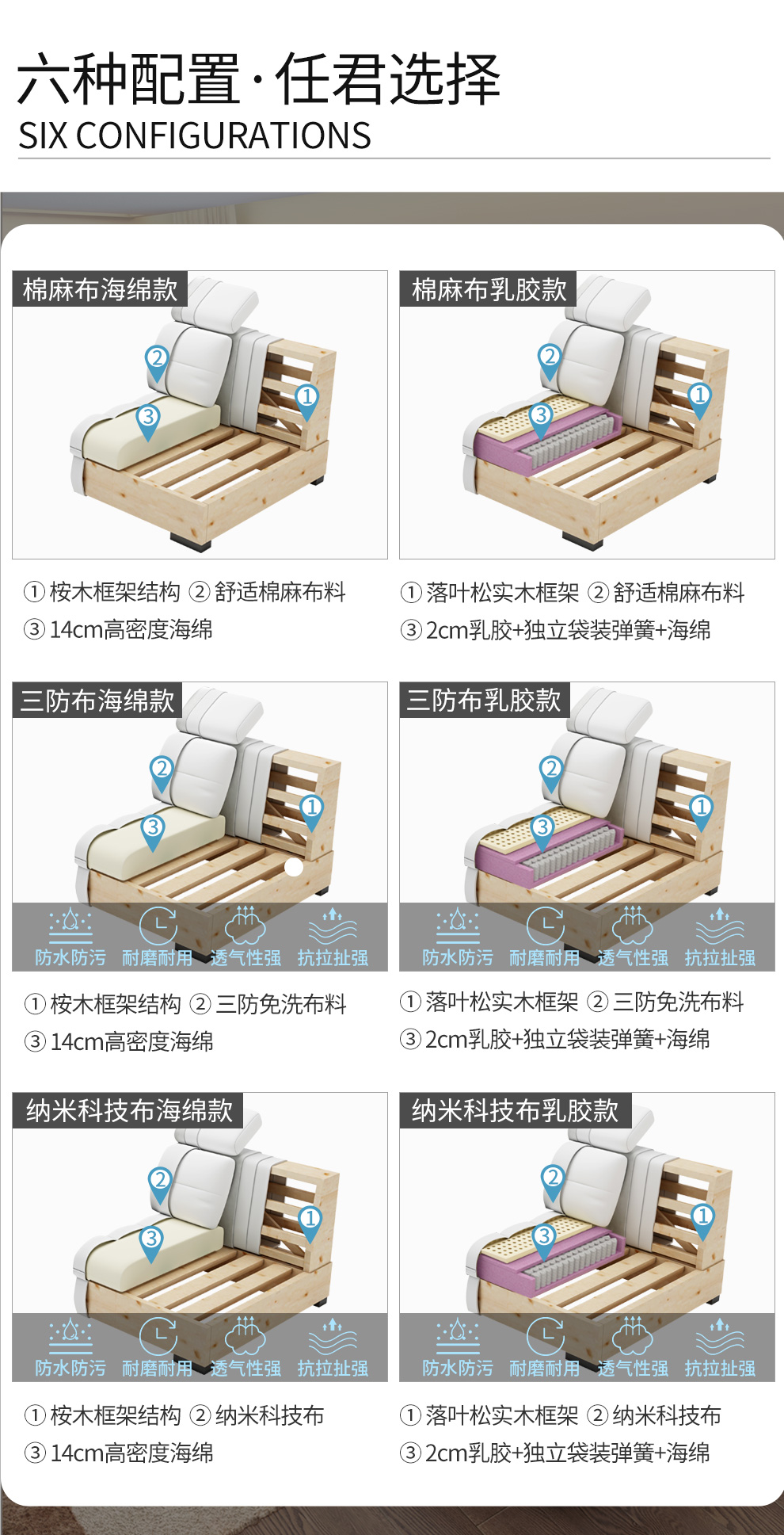 亲友 布艺沙发组合套装简约客厅整装家具大小户型现代可拆洗乳胶功能布沙发