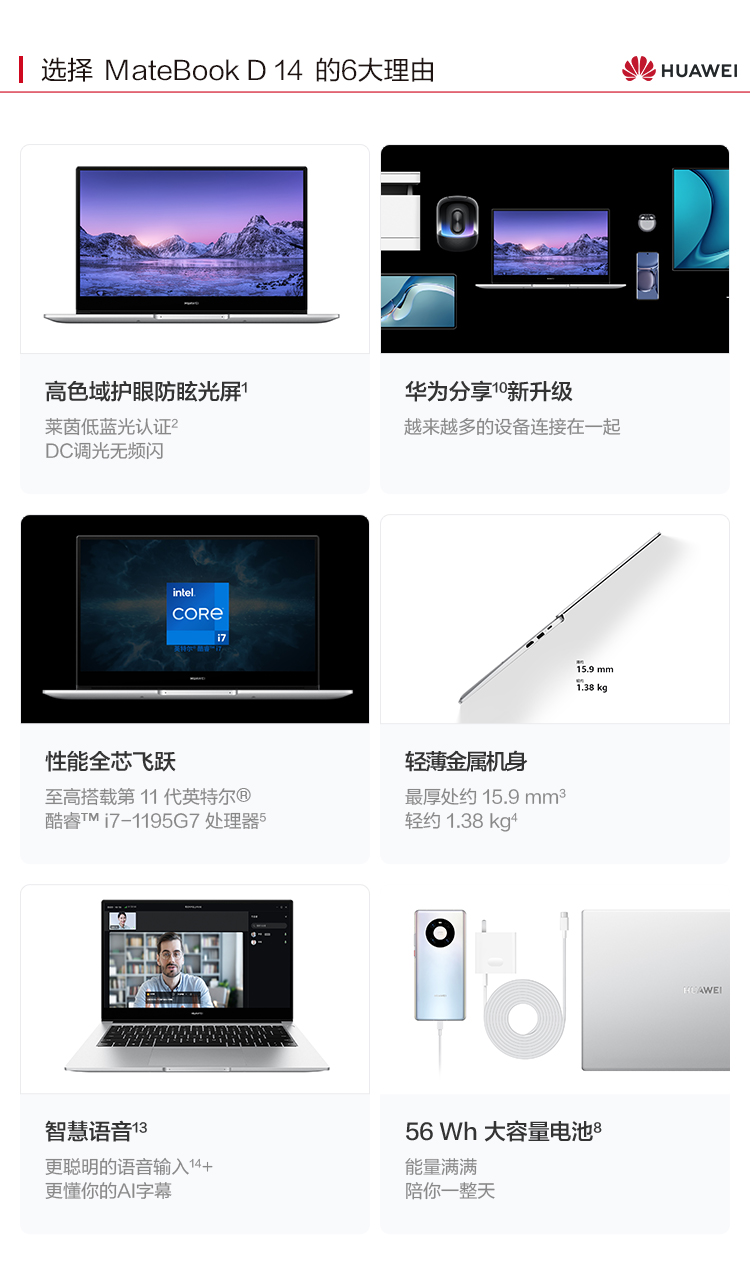 商品名称:华为笔记本电脑MateBook D 14 2022款 14英寸 11代酷睿 i5 16G+512G 锐炬显卡 轻薄本/护眼全面屏 银